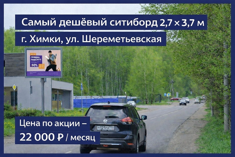 Если вам нужна наружная реклама с минимальным бюджетом, но стабильной видимостью, — обратите внимание на самый доступный ситиборд 2,7×3,7 метра, расположенный в МО г. Химки, ул. Шереметьевская при выезде с 1-го Южного пр-да, по направлению от Ленинского пр-та.